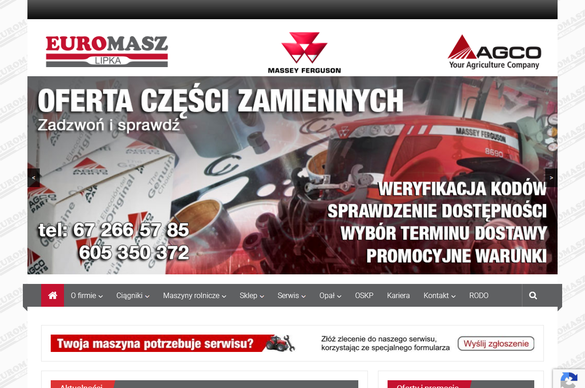 Oferujemy kombajny zbożowe Massey Ferguson oraz ładowacze Massey Ferguson. Firma Euromasz jako dystrybutor najwyższej jakości sprzętu, przeznacz